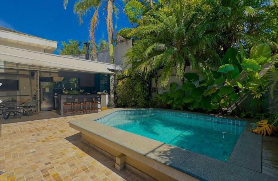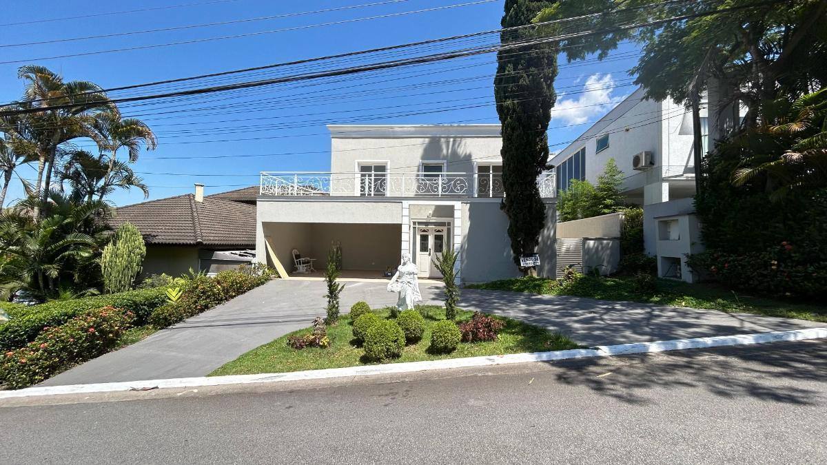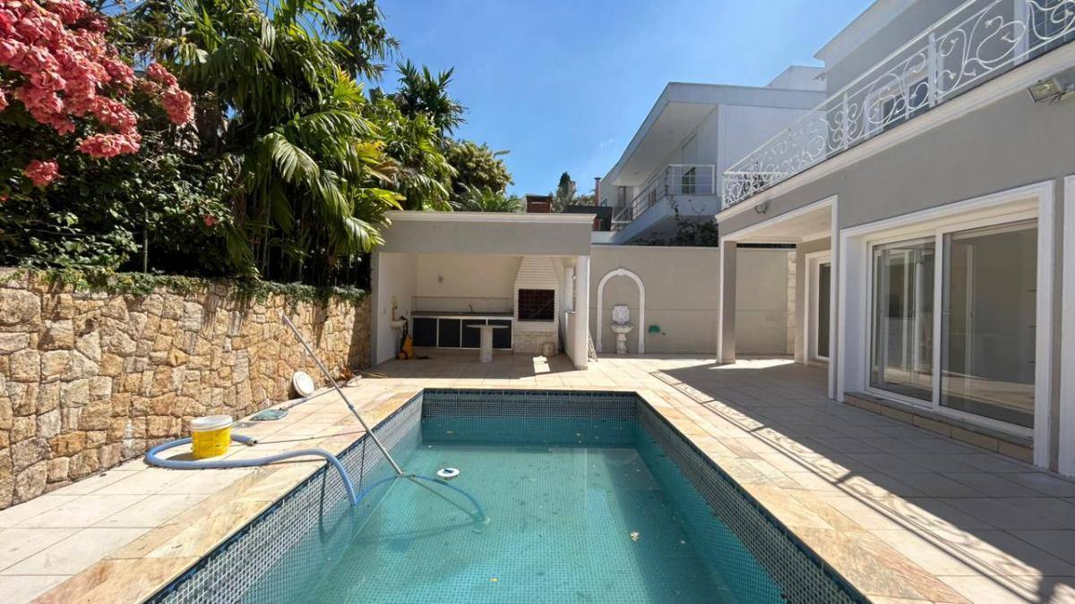 Residência charmosa em estilo clássico/moderno com ambientes amplos e muita luz natural. No térreo, layout totalmente plano com integração possível entre cozinha e copa, além de salas de estar, jantar, lareira e uma sala com vista para a piscina. Todos os quartos têm sacada, incluindo três suítes. A área de lazer oferece piscina e churrasqueira, e a garagem comporta até quatro veículos. Casa recém-reformada e bem localizada próxima à portaria e à academia do condomínio, ideal para quem busca conforto, espaços generosos e praticidade.