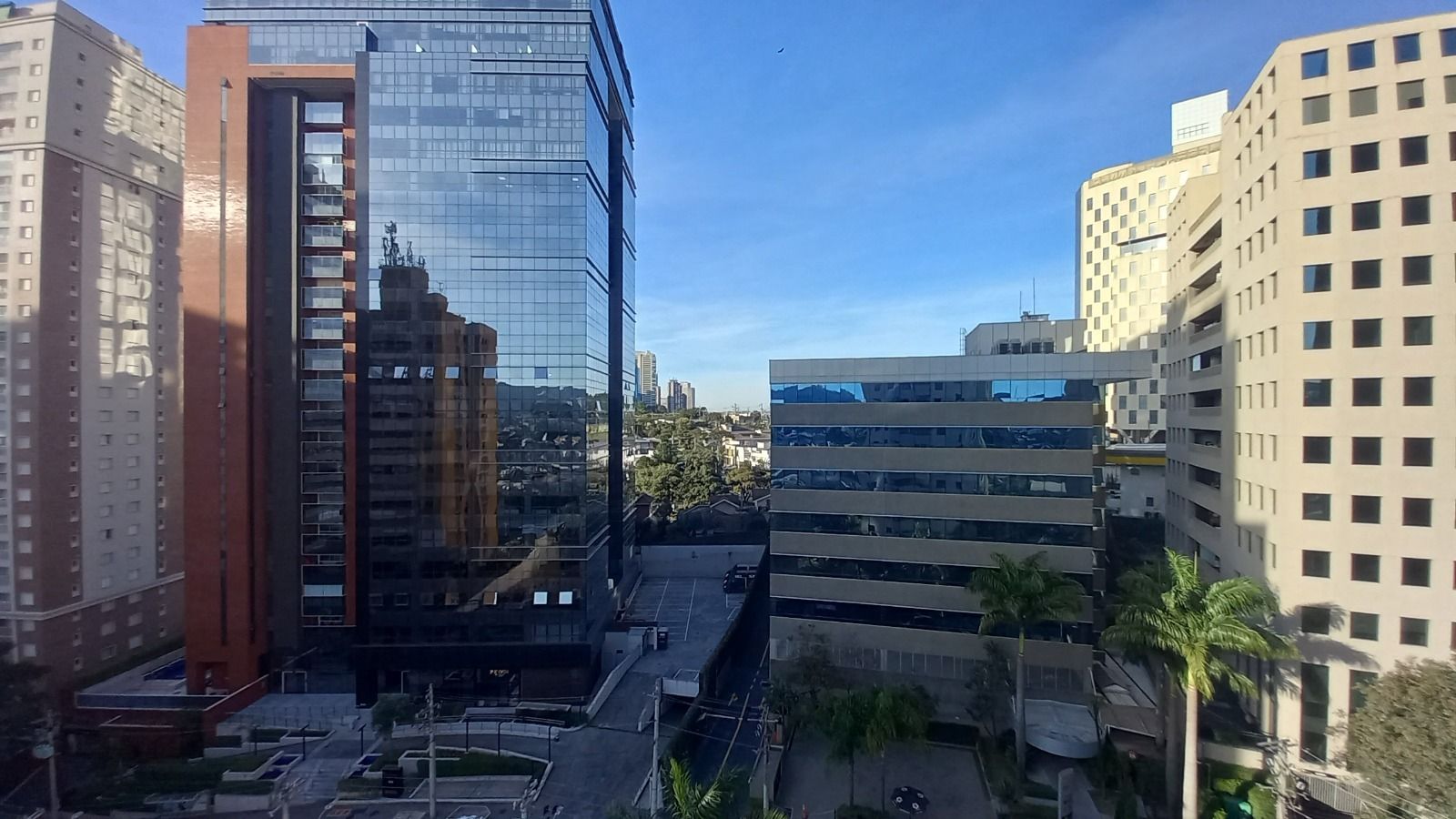 113 m2 andar alto Vista para o Tamboré 7 (sossego) 2 suites com ar condicionado Sala ampliada com ar condicionado Varanda fechada com vidro Totalmente reformado, inclusive pisos Armários Florense 2 vagas livres R$ 1.450.000