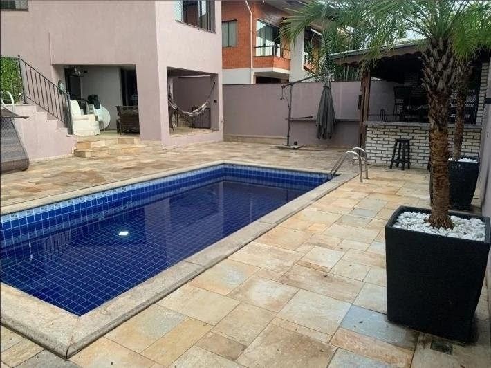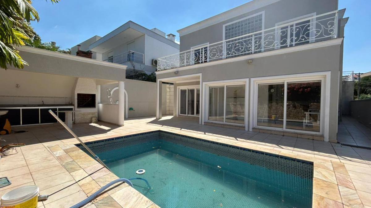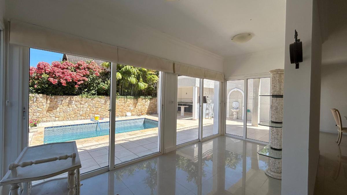 Residência charmosa em estilo clássico/moderno com ambientes amplos e muita luz natural. No térreo, layout totalmente plano com integração possível entre cozinha e copa, além de salas de estar, jantar, lareira e uma sala com vista para a piscina. Todos os quartos têm sacada, incluindo três suítes. A área de lazer oferece piscina e churrasqueira, e a garagem comporta até quatro veículos. Casa recém-reformada e bem localizada próxima à portaria e à academia do condomínio, ideal para quem busca conforto, espaços generosos e praticidade.
