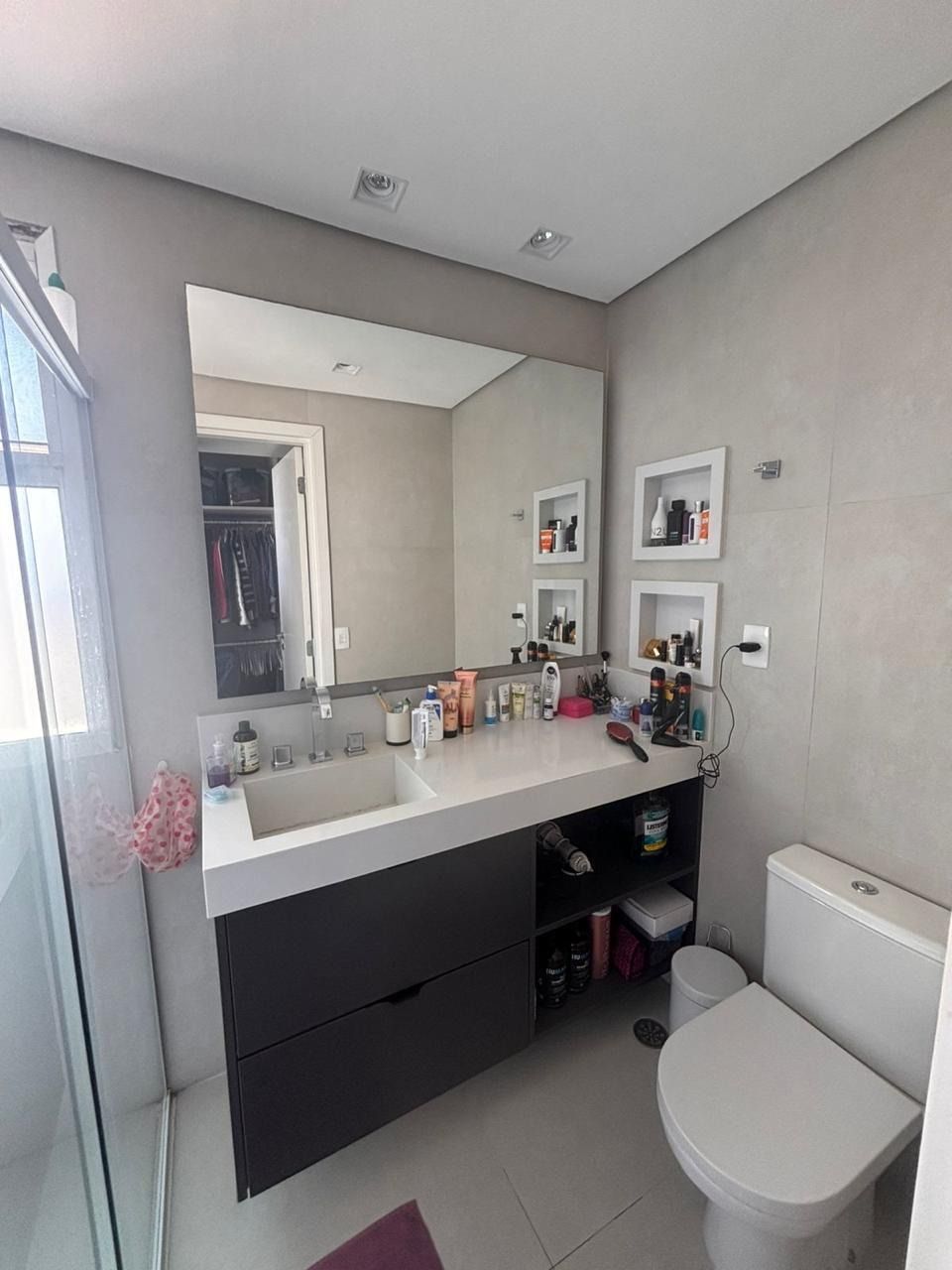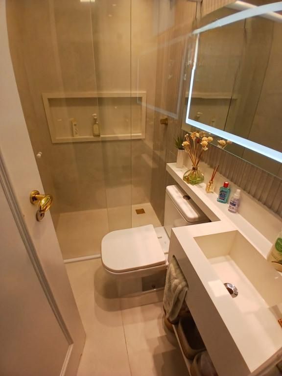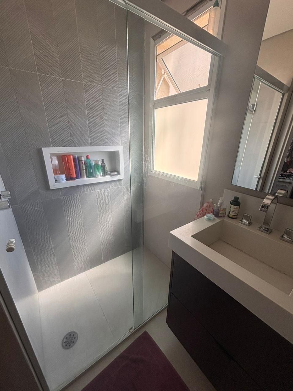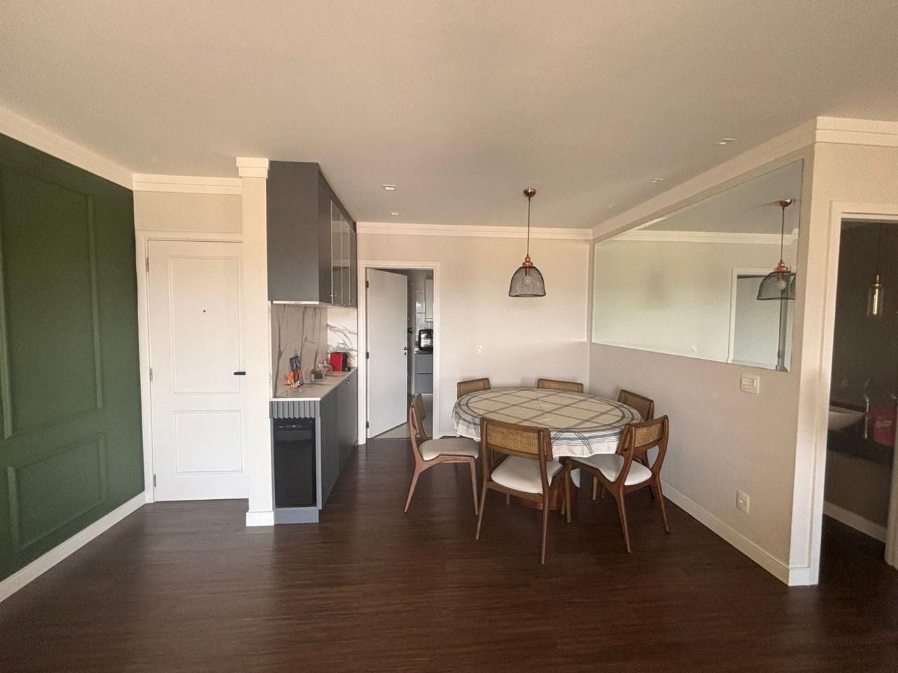 113 m2 andar alto Vista para o Tamboré 7 (sossego) 2 suites com ar condicionado Sala ampliada com ar condicionado Varanda fechada com vidro Totalmente reformado, inclusive pisos Armários Florense 2 vagas livres R$ 1.450.000